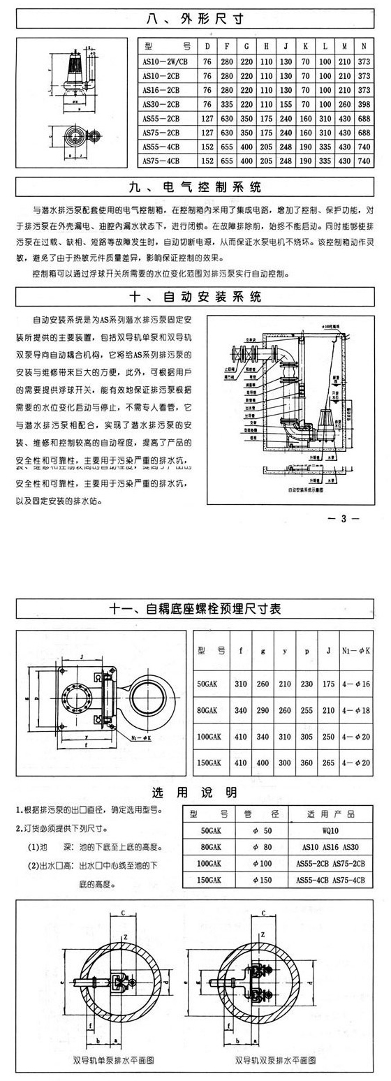 AS、AV型潛水式排污泵是本司采用德國ABS公司的技術研發而成,此系列水泵具有帶撕裂的結構,能將污水中長纖維、袋、帶、草、布條等物質撕裂、切斷,然后順利排放,特別適合于輸送含有堅硬固體、纖維物的液體以及特別臟、粘、滑的液體。 該系列排污泵水力性能先進、成熟,產品經性能測試,各項指標均符合有關設計要求。